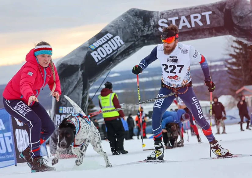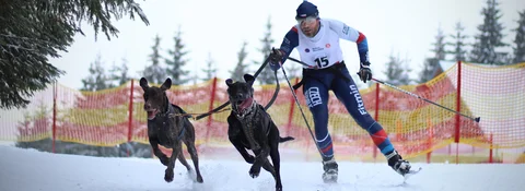 Skijöring - běžkař s jedním či dvěma psy.